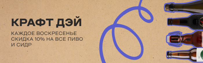 Каждое воскресенье во "Вкус Story" скидка 10% на все пиво, сидры и крафтовые напитки для участников нашей программы лояльности
